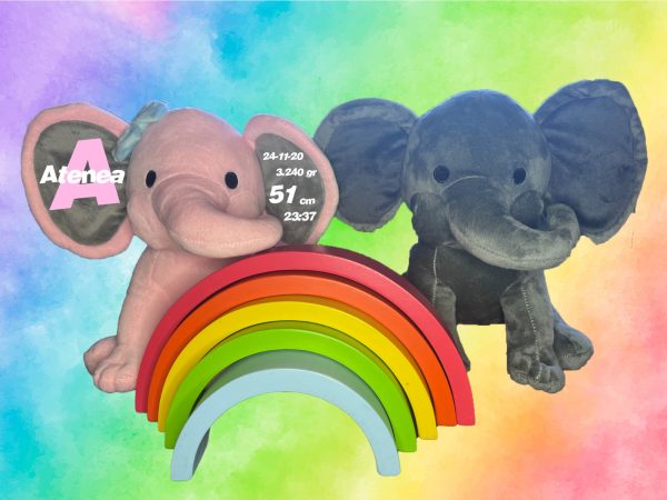 Estadísticas de nacimiento del bebé Peluche de elefante , Animal de peluche personalizado, Regalo del bebé, Estadísticas de nacimiento del bebé, Anuncio del bebé.